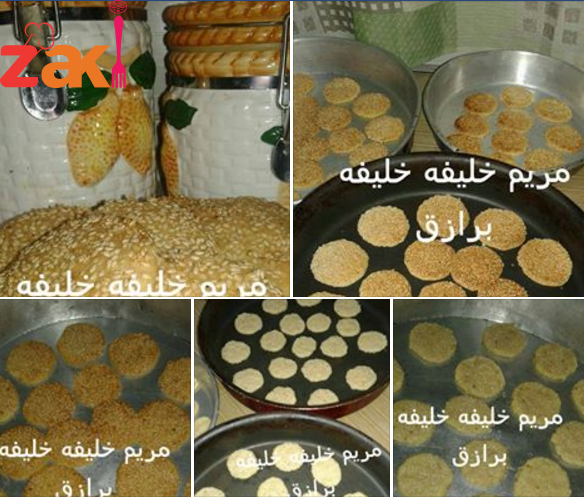 كيلو طحين/ونصف كيلو سمنه فقط /كوبين سكر بودره /10غم ينسون مطحون/10غم شومر مطحون/10غم مستكه بطحنها مع شوية سكر /100غم حليب بودره/ملعقه صغيره بيكنج بودر/ ونصف كوب ماء أقل أو أكثر لتصبح عجينه ناعمه ومتماسكه وما تلزق باليد ويتم بس ما سبق بالسمنه وثم بعجنها بأصابعي وثم بعمل كرات ضغيره وبمسكها بأصابعي الوسطى الثلاثه (وبغمسها ب1كيلو سمسم بسكبهم بوعاء مسطح وليس عميق وبحط ملعقتين دبس التمر واذا مو موجود حطي قطر) وبحرك السمسم والقطر معا وبعد ما أغمس كره البرازق بالسمسم برتبها بصينيه وبخبزها على حراره 220 والخبز من 10الى15دقيقه وبعد خروجهم من الفرن نتركهم ليبردو تماما عشان ما يتفتفتو معك وادعولي مريم خليفه خليفه