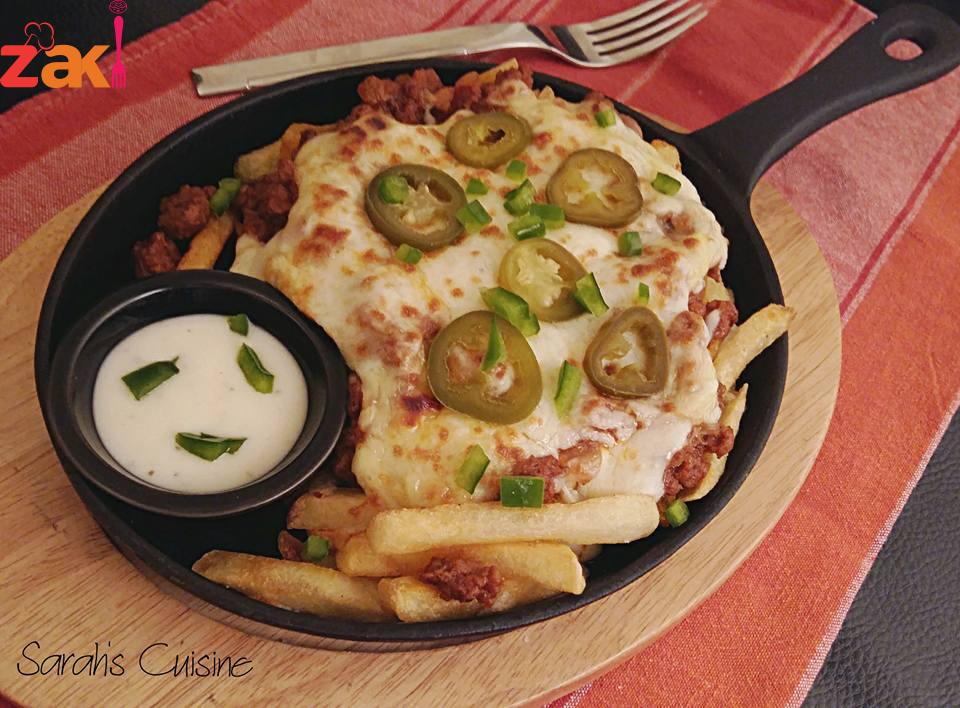 تضاف اللحمه وةالاجبان ع الوجه و توضع بالفرن مده 10 دقايق أو أقل لتذوب الجبنه و تزين بالهالبينو.