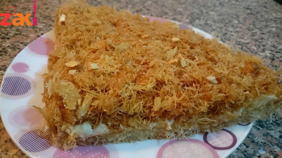 بتجيبي نص كيلو كنافة وتقطع قطع صغيرة وتضيفي عليها نصف كوب سكر بودر ونصف كوب سمن سخنة وتقلبيهم مع بعض، ، نضع كمية صغيرة في صواني الكب كيك وتضغطي عليهم كويس وتدخليهم الفرن وفور حروجها تضعي ملعقة سيرب (شربات) وتضعي ملعقة كريمة وتضعي عليها قطعة اخرة تكون عليها سيرب بس