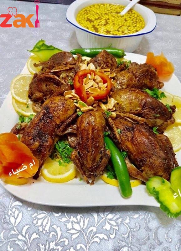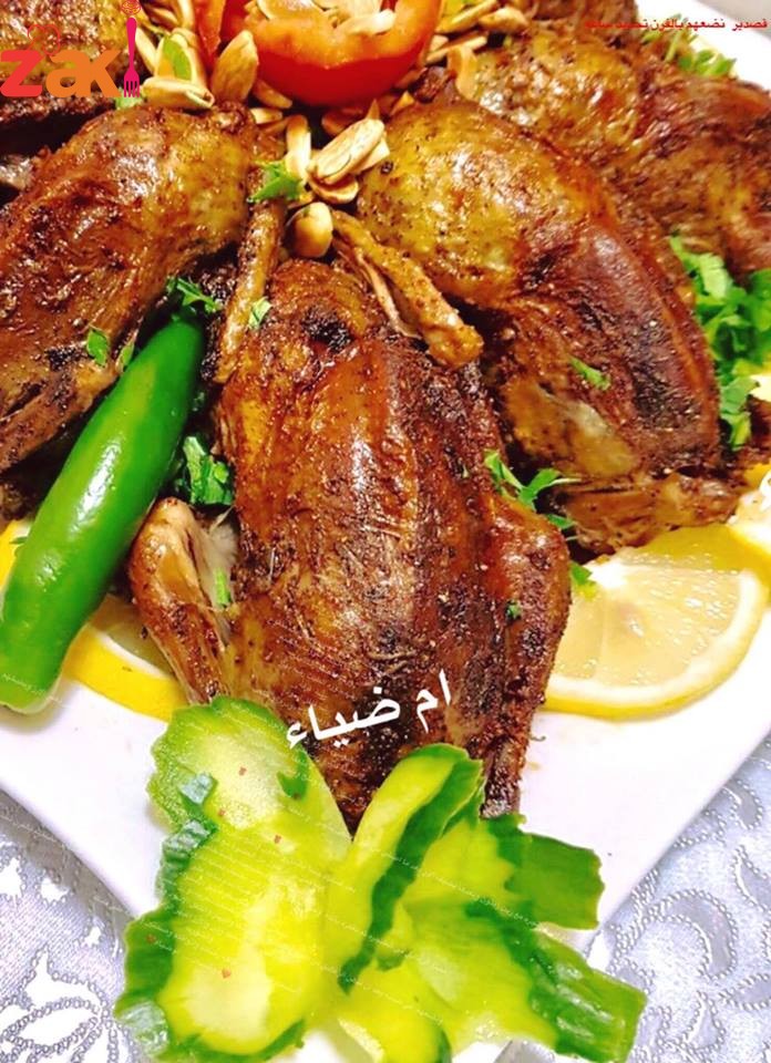 - ونضعهم في صنيه بعد ان ندهن الزغاليل من الخارج باليمون والببريكا والبهار والفلفل الاسود وزيت الزيتون ونغطيها بورق قصدير نضعهم بالفرن تحديد ساعه