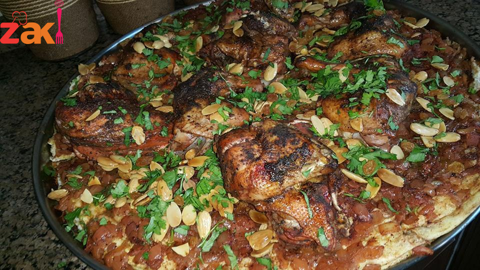وعالفرن تحميص من تحت ومن فوق رح ياخد شوية وقت لانه الخبز مبلول بس يتحمر بنكرر العملية لحتى تخلث كمية الخبز والبصل وكل طبقة ضروري تتحمر من فوق واخر طبقة اكيد البصل وسماق وبنحط الدجاج وكله عالفرن وصحتين وعافية