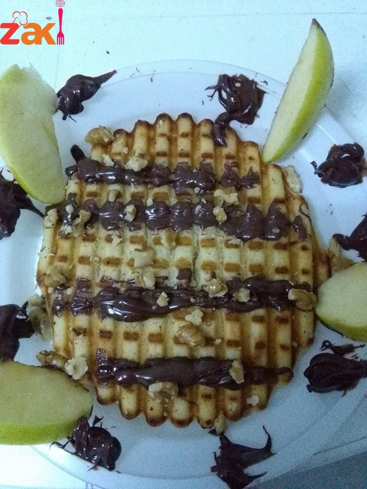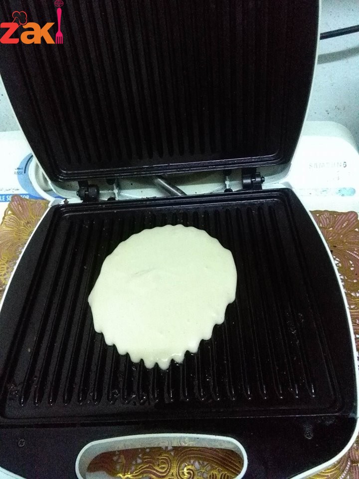 نخلطهم المقادير جميعا, ونسخن الجريل وندهن زيت نباتي وعندما يحما نضع مغرفة من الخليط ونغلق الجريل لمدة 3دقائق ونقلبه بالطول والعرض حتى يعطينا شكل الوافل.