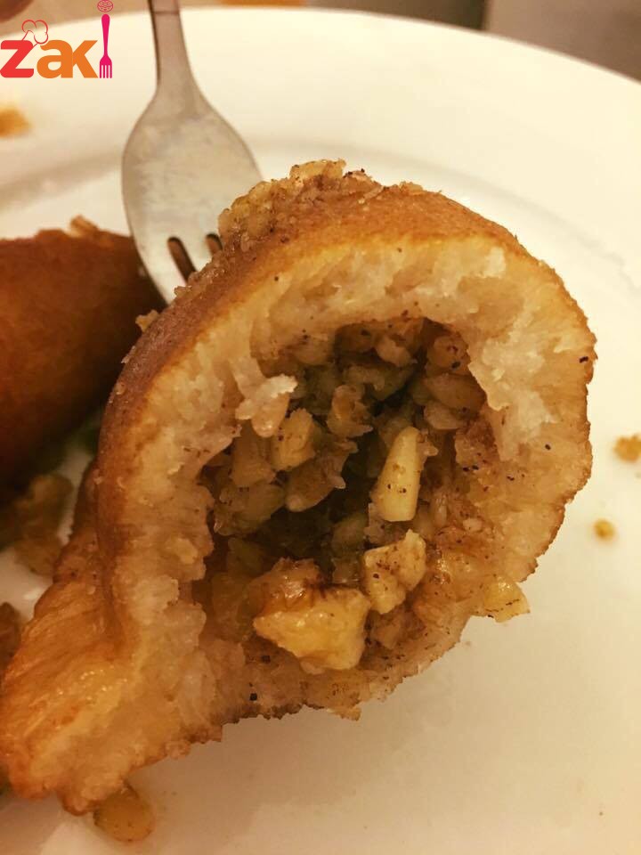 • تحشى جبنه ويفضل خليط من الجبنه العكاوي والموتزريلا او خليط الجوز المطحون خشن مع جوز الهند والقرفه والسكر،