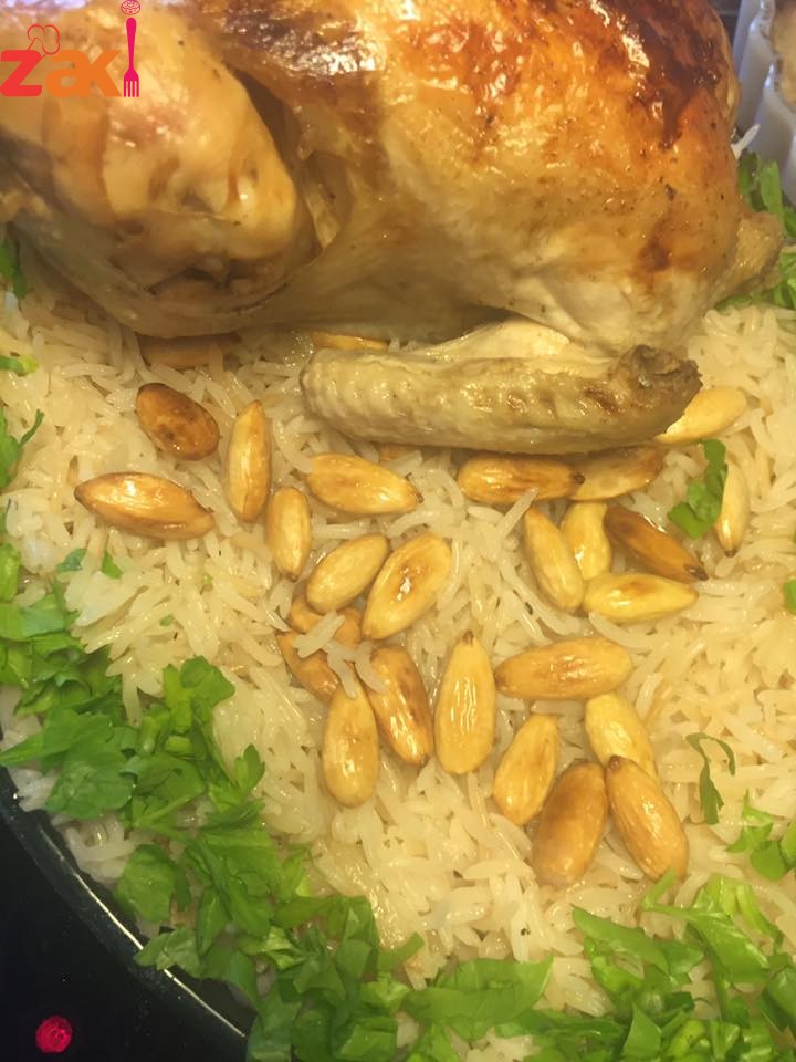 ثم نضيف على الوش رز ابيض بنكون محضرينه مسبق والرز عباره زيت نباتي بطنجره يكون ساخن