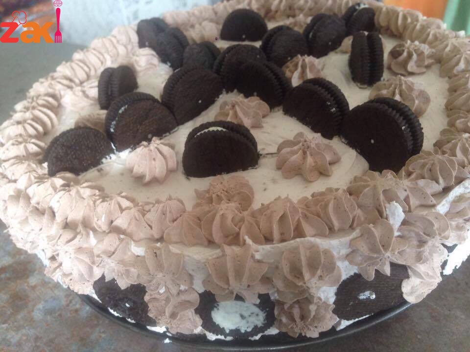 وغمسناه بالحليب والنسكافيه ونسكب الخليط فوق الاوريو والتزييين حسب الرغبه