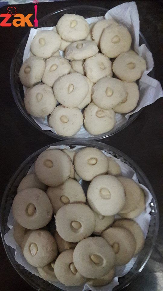 تخلط جميع المواد مع بعض وتعجن جيدن ونتركه بل براد لمدة ربع ساعه ترتاح وبعده نشكله حسب الرغبه وتزين بل مكسرات المتوفره لديكي لوز او جور او فستق حلبي