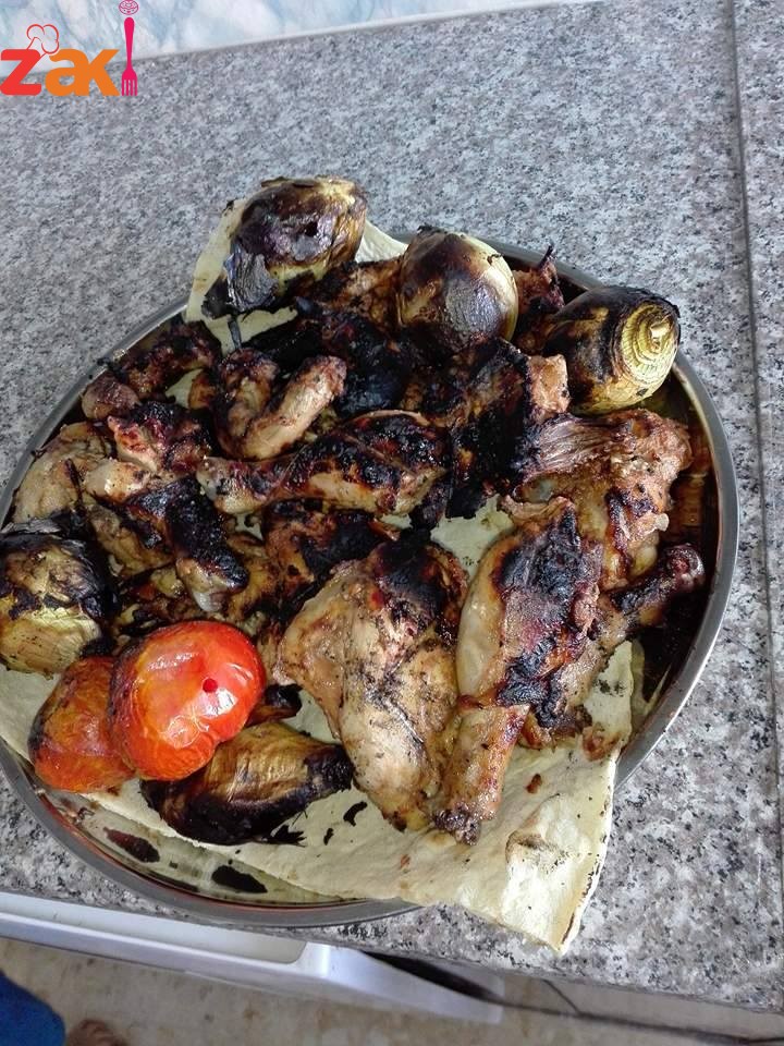 تبلت الجاج قبل بيوم ب تومه وملح وقرنفل وبهارات مشكله ومعلقتين لبن ومعلقتين كتشب ودبس رمان وزيت زيتون