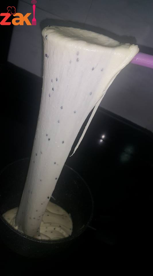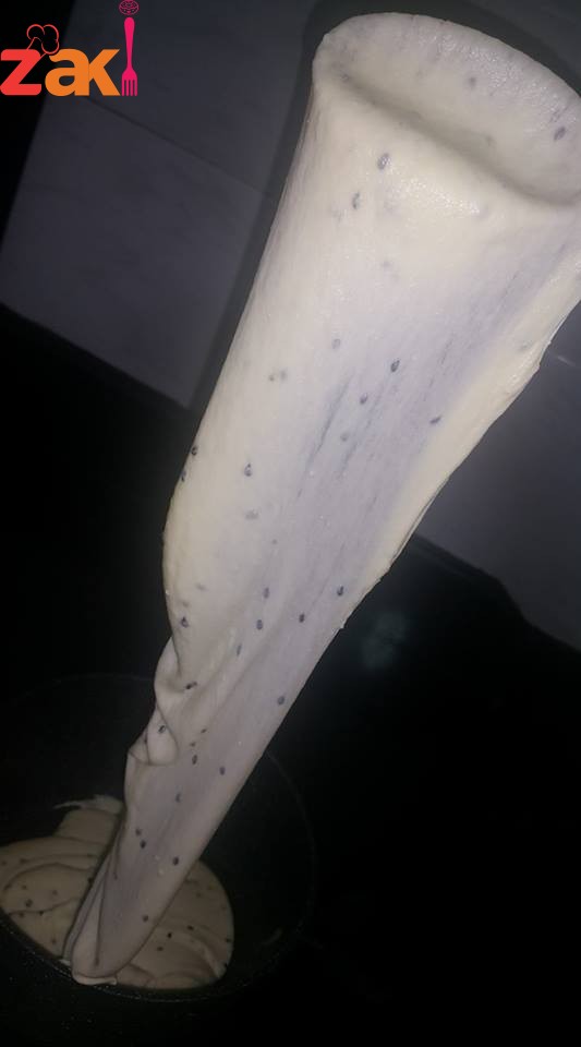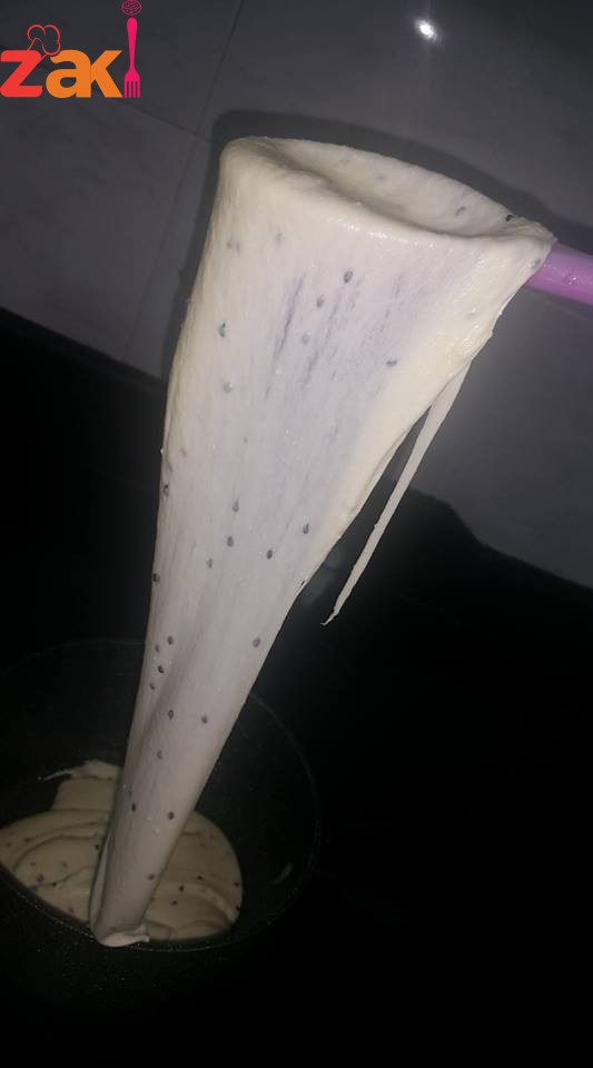 ننخل المواد الجافة ثم نخلطها ومنضيف المواد السائلة ومنعجنا منتركا ترتاح شواي ثم نبدأ بالحشي .