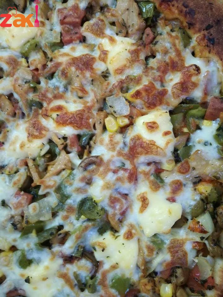 بفرد العجينه بشكل دائري و بحط عليها كاتشب و بحط الخلطه عليها و بحط عليها جبنه مثلثات و بدخلها الفرن حتى تستوي من تحت و بس اجي احمرها بحط عليها جبنة موزريلا و بحمرها و صحتين و عافيه ♥