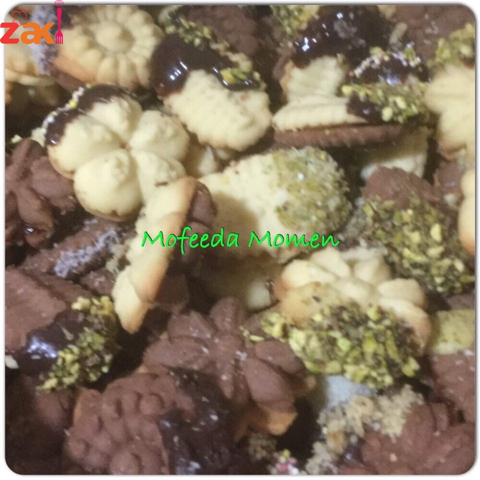 ممكن تقسيم العجينة نصفين نصف يترك ابيض ويضاف كاكاو الي النصف الباقي يسوف في فرن هادي ولا يترك يتغير لونه بعد ان يبرد تلصق كل حبتين بالمربي وتجمل بالشيكولاته والمكسرات#مفيدة#