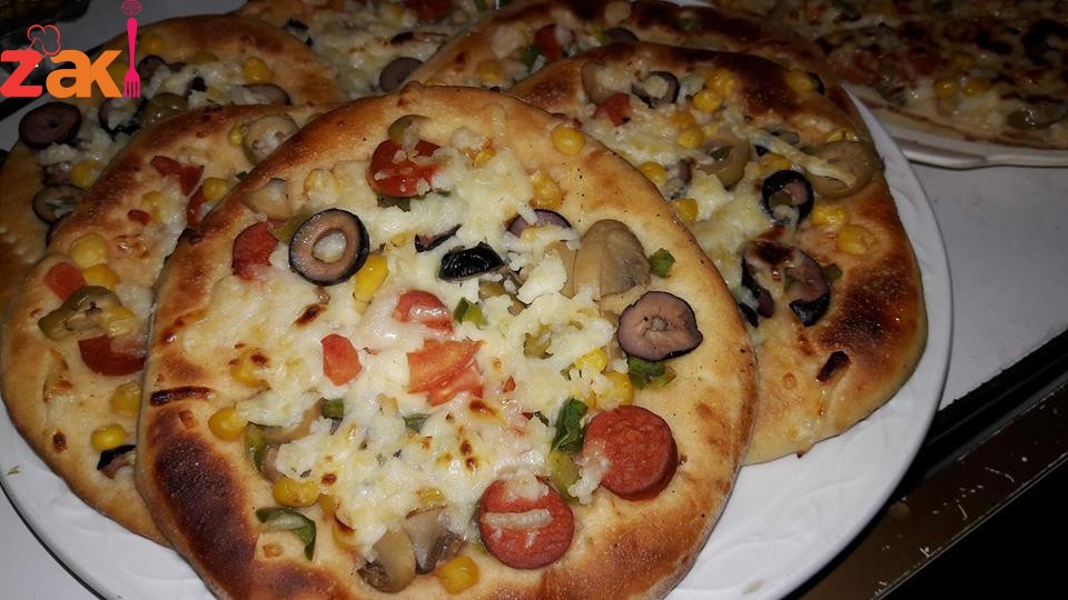 كاتشب لدهن العجينه وزيتون اسود واشقر…. وفليفله وذره حب …..وفطر …ونقانق ….وجبنه صفره وجبنه موتزوريلا