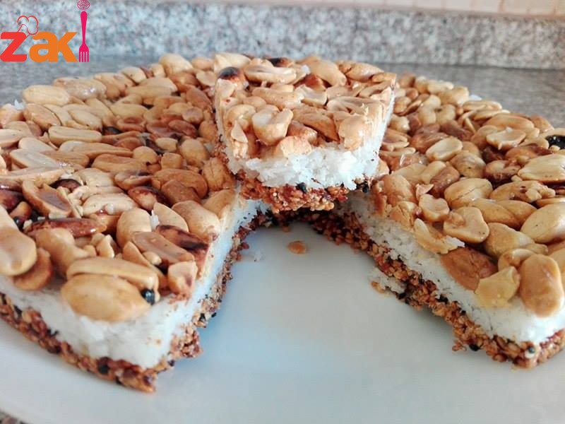 حلا سمسميه مع الفستوقيه بجوز الهند بشكل طبقات