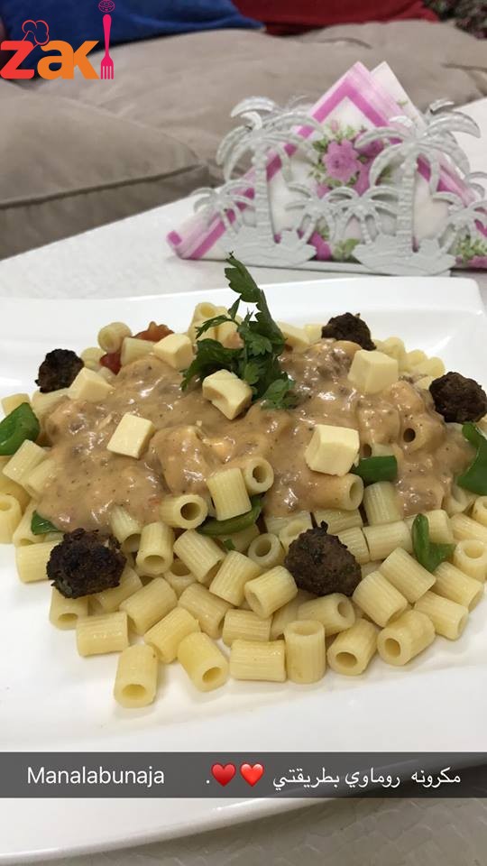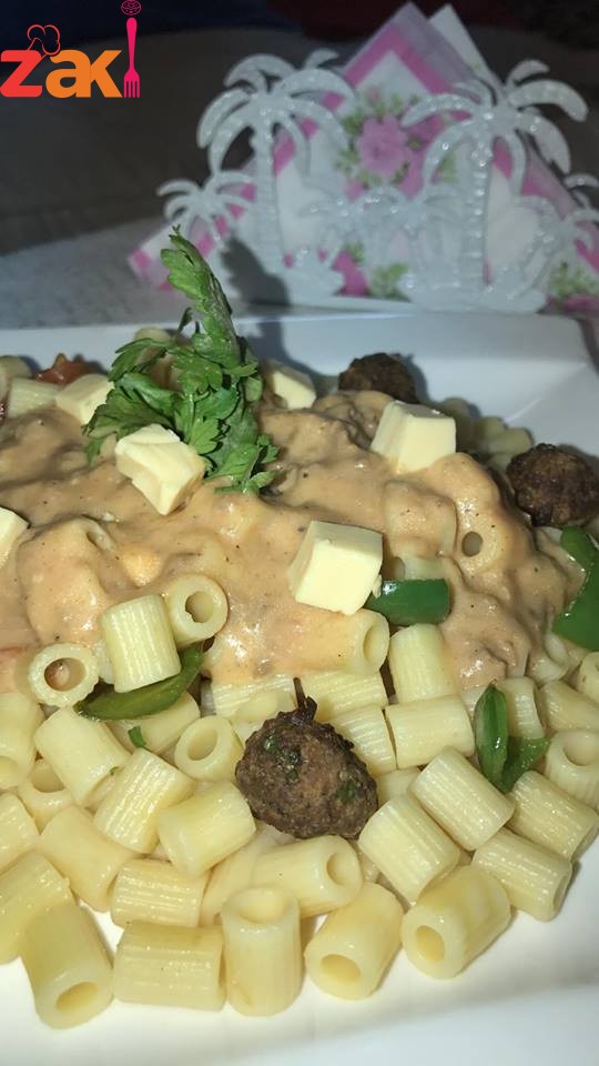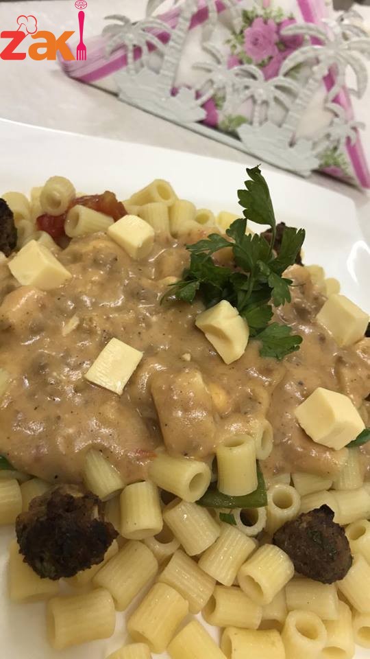 بنخلط الصلصتين على بعض. وبنسكبها على المكرونه ونقلبهم مع بعض