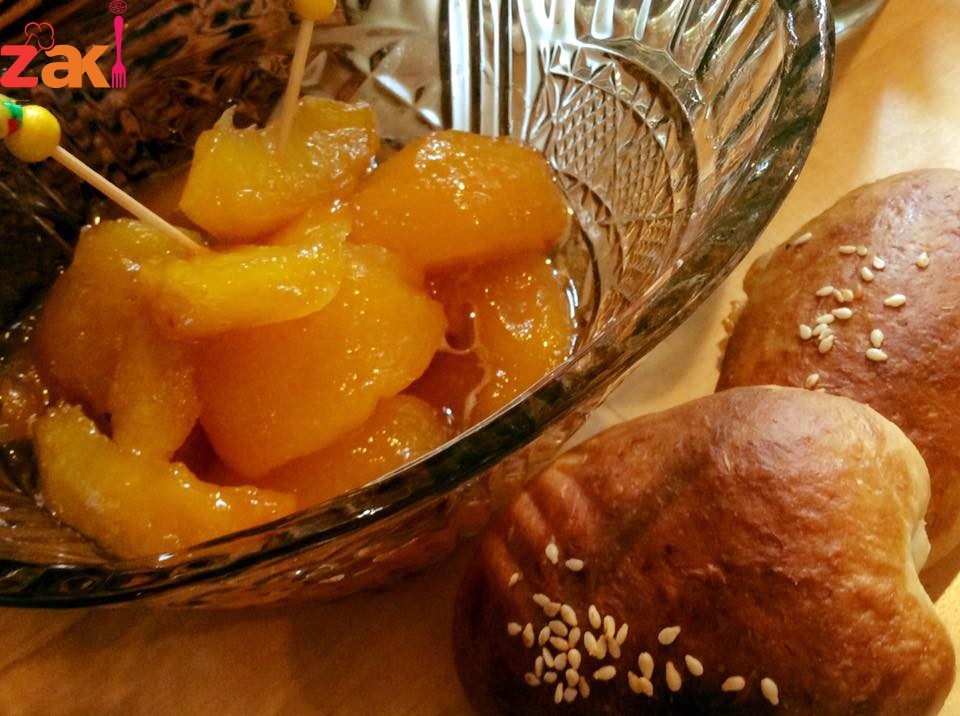 نزين نص كيلو دراق مقشر او بدون تقشير ومنزوع البذور ثم نضيف اليه كوب ونص سكر وعصرة ليمونه حامضه
