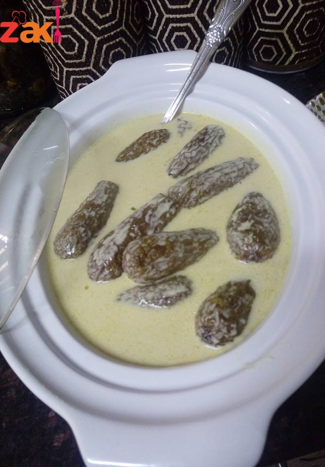 بعد ان يغلي اللبن دون ان يفور فوران بل يغلي كالماء ،نسقط حبات الكوسا فوق اللبن ونضيف له الثوم المدقوق وندعها تغلي لمدة 5 دقائق