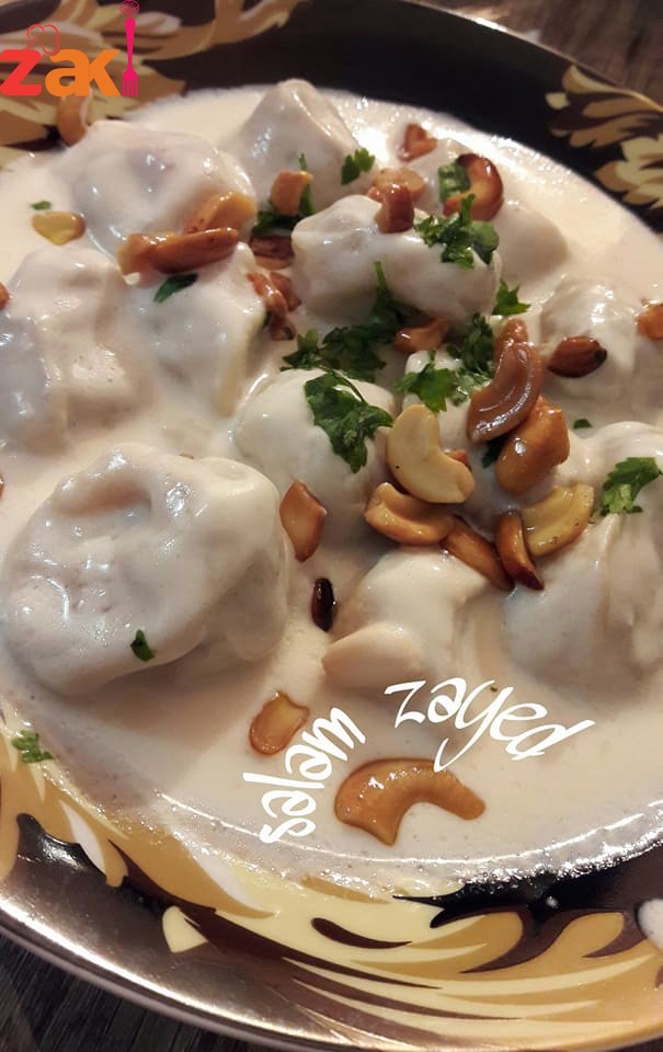 عجنتلها عجينة بدون خميرة عبارة عن طحين شوية حليب بودرة و وملح ومي وتركتها ترتاح شوي واستخدمتها متل ما موضح بالصور .. وقت الطبخ بحط اللبن وبضيفله وهو بارد م ك نشا وملح وبضل احرك فيه ليفور بسقط حبات الششبرك وبضل اقلبه لتستوي العجين بقلي ثوم وبحطها عليهم وبقلبهم وبقدمها وبزينها بالكزبرة واي مكسرات متوفرة عندك وصحتين وهنا ..