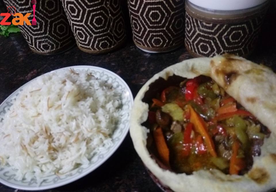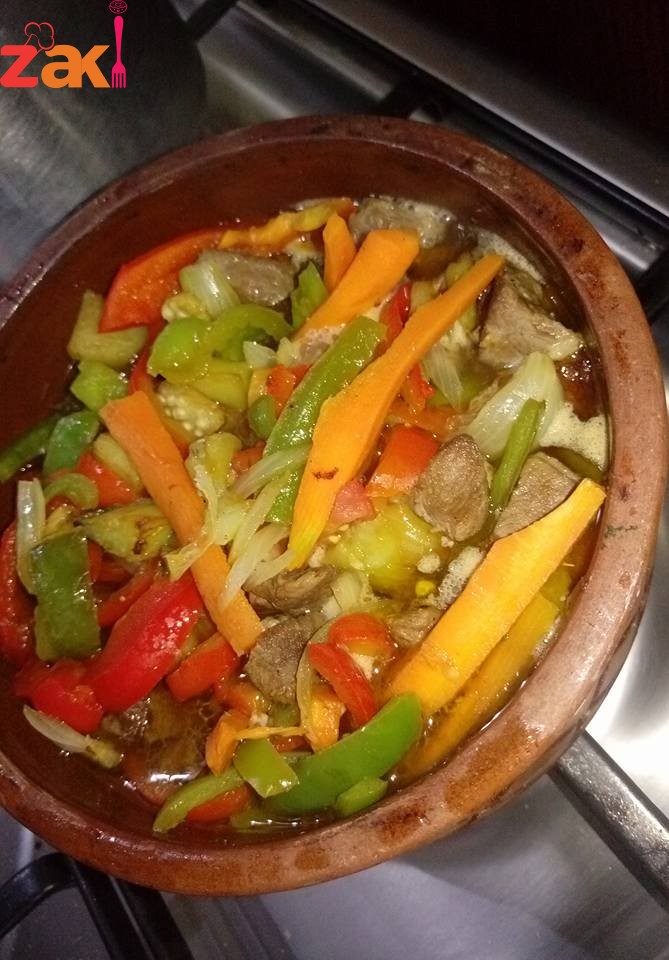طاجن اللحمة بالخضار بالفخارة بالفرن