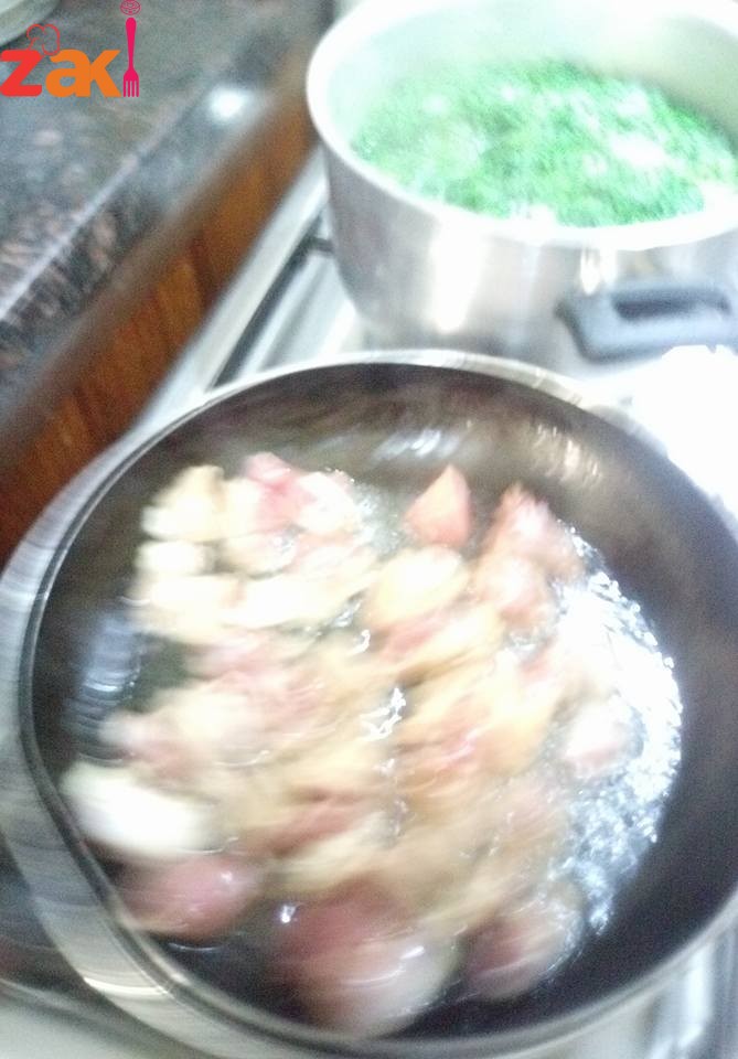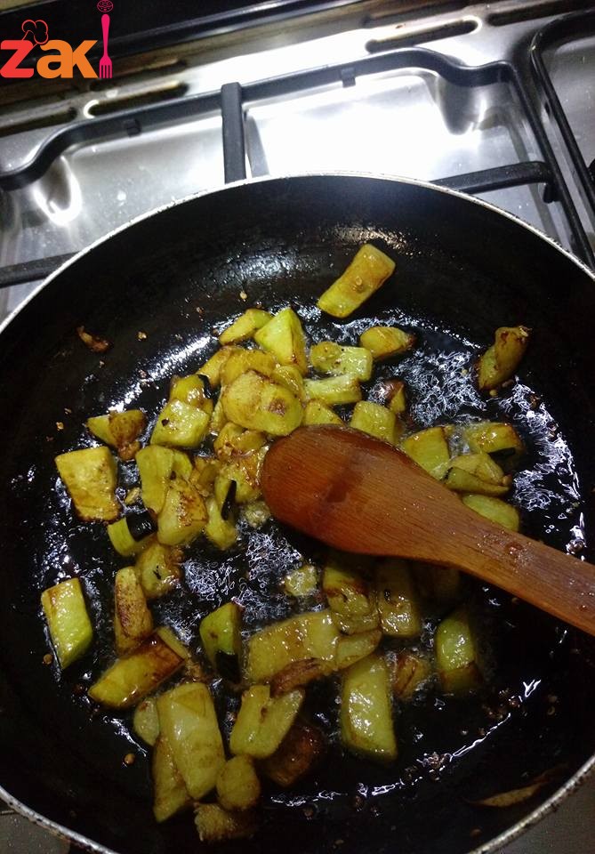 الباذنجان بقلبه لوحده لحتى يصير لونه اشقر وحتى ما يذوب مع الخضرة