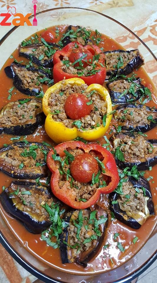 بنحوس بصلة جوانح وبنضيف بندورة مقشرة ومقطعة وبنقلبهم وبنضيف ملح وفلفل اسود وكاستين مي كبار وملعقتين رب بندورة وبنحطهم بلبايركس وبنصف البتنجان وبنرش ببريكا وبقدونس على الوش عشان تعطينا لون حلو وعلى الفرن بدها نص ساعة