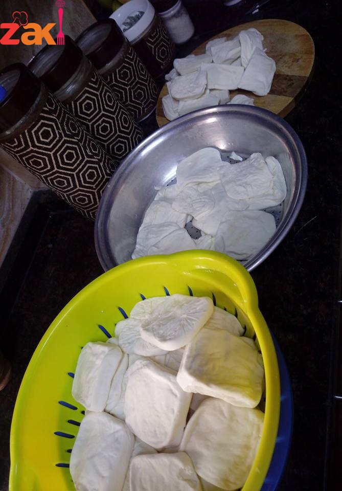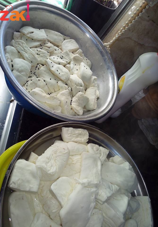 بتشعلي النار تحتها وبتقطعي الجبنة كل قرص قطعتين لبينما تغلي المي .وبس تغلي بتبلشي تضيفي كمية من الجبنة وتتركيها تغلي لحتى الجبنة تطيش ع الوجه بتكون مدة الغلي انتهت ،بتشيليهم وبتحطيهم بصينية او مصفاية لحتى يبردوا وبتحطي كمية ثانية وهكذا حتى نفاذ الكمية