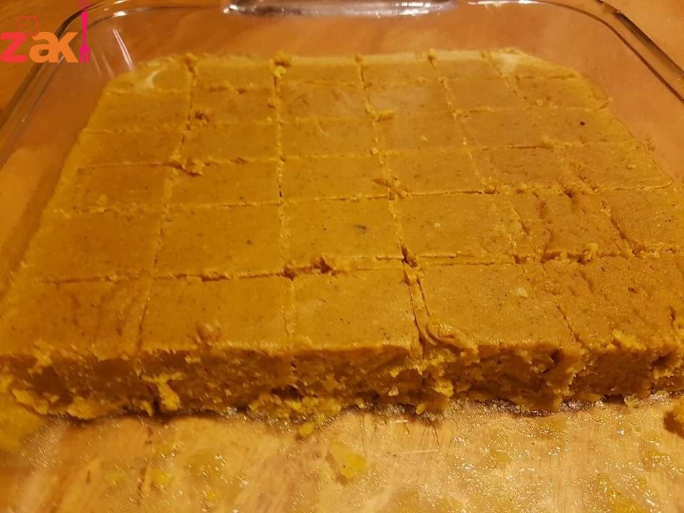 ندهن جاط البايركس بقليل من الزيت ونسكب الخليط ونضعه في الفريزر حتى يجمد