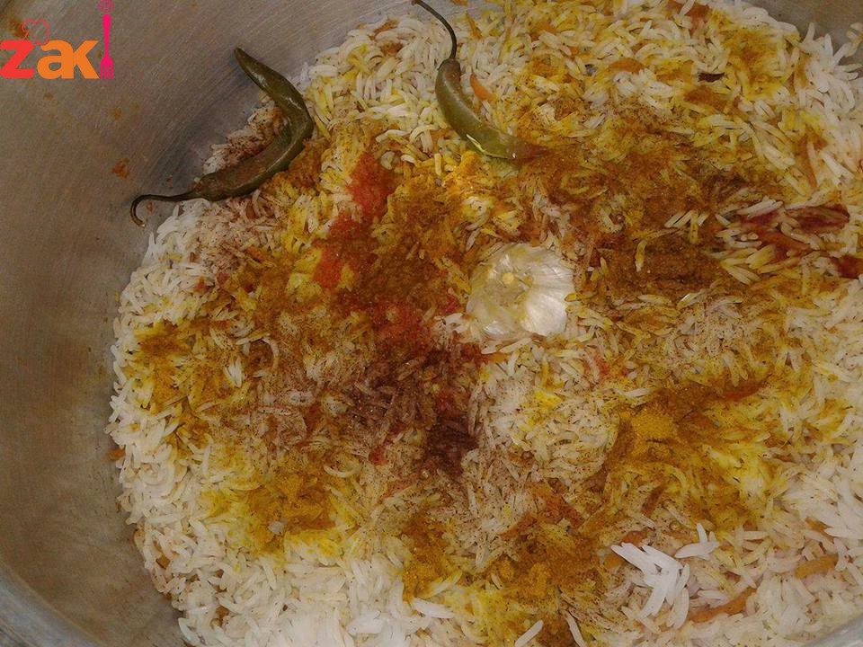 بتقطعي الجزروالفلفل الوان وبتبهري وهو ني وبتملحي بعد ميستوي الدجاج بتحطي فوقه قرنين فلفل اخضر حار والفلفل الوان وجزو واللومي والرز بكوني مسلوق نص سلقه بتحطي جزر مبروش وبهارات المذكوره والملح وبتغطي المكونات السابقه بالرز بنفس طنجره الضغط