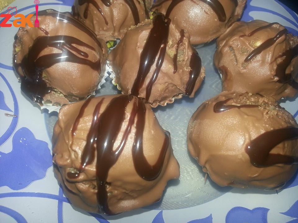 دوبي اي شوكوﻻ عندك بحمام مائي و غمسي الكرات و حطيهن بالثﻻجة شي ساعتين و حطي صوص شوكوﻻ جاهز عالوجه