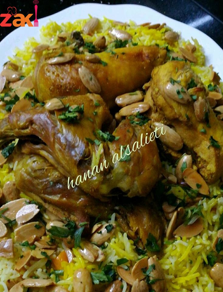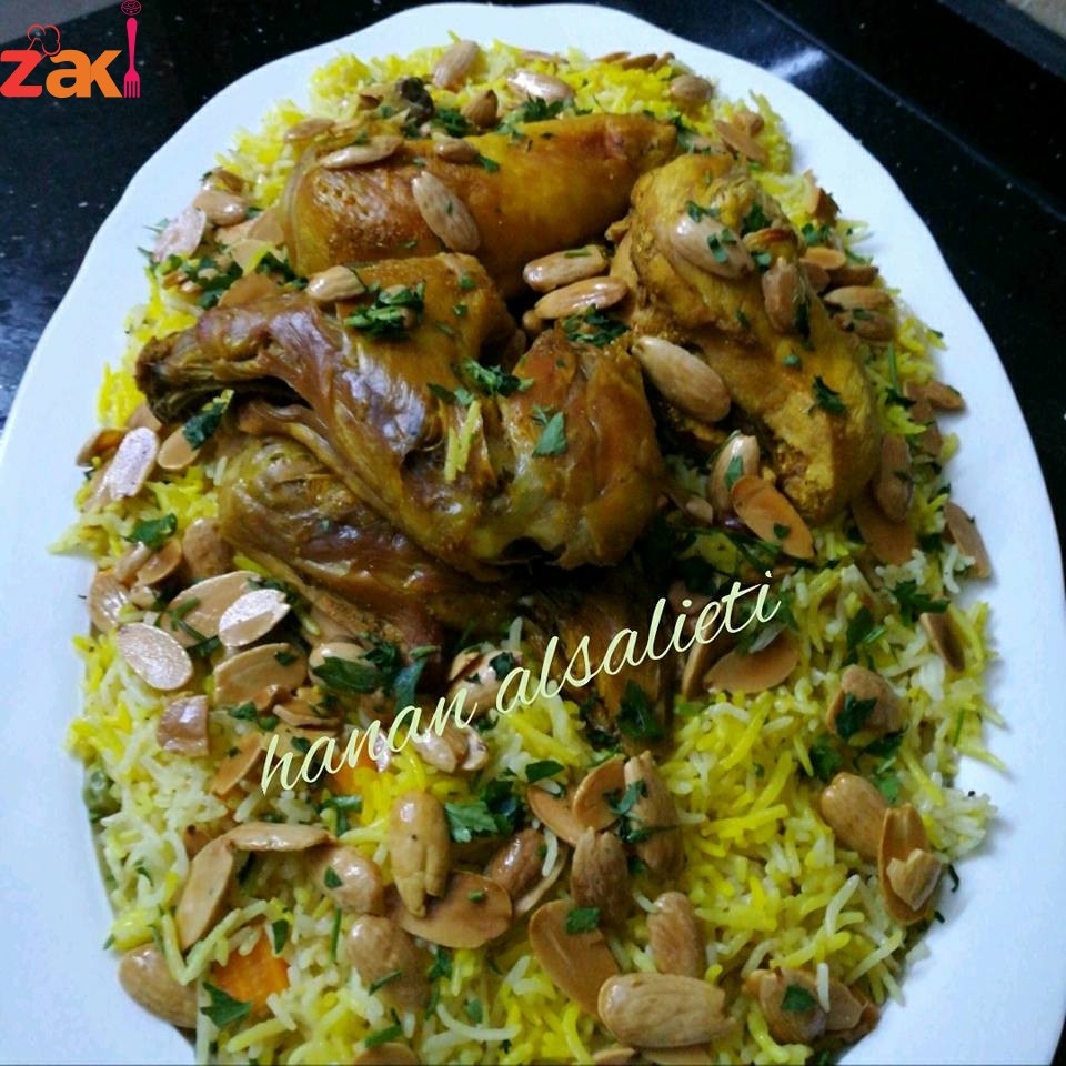 بالنسبه للرز بعد ما ننقع الرز لمدة نصف ساعه انا نقعت 3 اكواب منغسله كويس ومنضيفه على مرقة الدجاج وازا احتاج المي منزيده شوي ومنضيف الجزر والبازيلا ومنخلطهم مع الرز ومنطبخه اول شي على نار عاليه لحتى يغلي وبعدين منوطي عليه لحتى يستوي على نار هادئه وقبل ما يتشرب الرز المي منحط نصف ملعقة صغيره كركم مع نصف كوب ماء ومنخلطها مع بعض ومنحطهم على الرز من دون تحريك ليطلع الرز معك لونين وبس انخلص منقدمه متل ما منحب