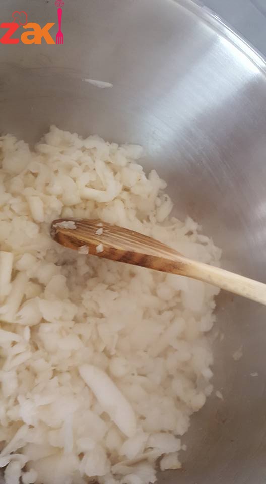 نقوم بوضع ماخرج من حبات اللفت اثناء الحفر بطنجرة مع رشة ملح ونقلبهم ليذبلووو