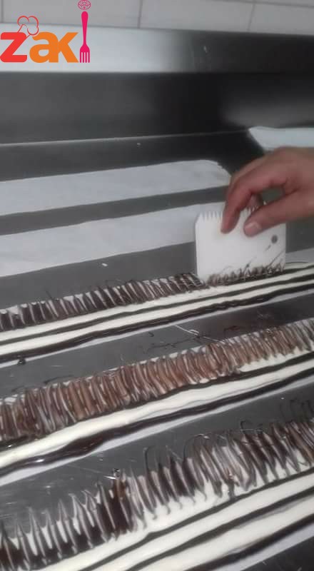 ثم ننزل بالشوكولاته السمراء بعد تقطي عها قطع صغيره جدا