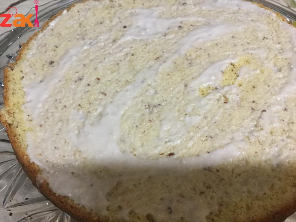 نخرج قالب الكيك عند الإستواء من الفرن ونتركه جانباً حتى يبرد قليلاً نرفع الك يك من القالب ونضعه على شبك حتى يبرد تماماْ