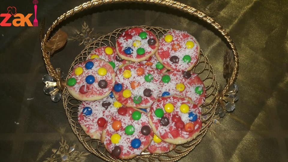 لتحضير العجينة نفرد العجينة على ورق الزبدة ثم نفرد العجينة بالمرق ونقطعة بالقطاعة لدوائر صغيرة ونعمل هكذا حتى ننتهي من كل الكمية ثم نضعهم في صينية فرن غير لاصقة وندخلهم على فرن محمى مسبقا على درجة حرارة ١٨٠ مئوية لمدة ١٢ دقيقة او ربع ساعة حتى يحمر قاع البسكوت وهذا يرجع حسب درجة حرارة الفرن ونتركهم يبرد ثم نضع عليهم الأيسنغ ونزينهم بالشكولاته الملونة وجوز الهند ونقدمهم مع الشاي او القهوة (وصحتين وعافية )
