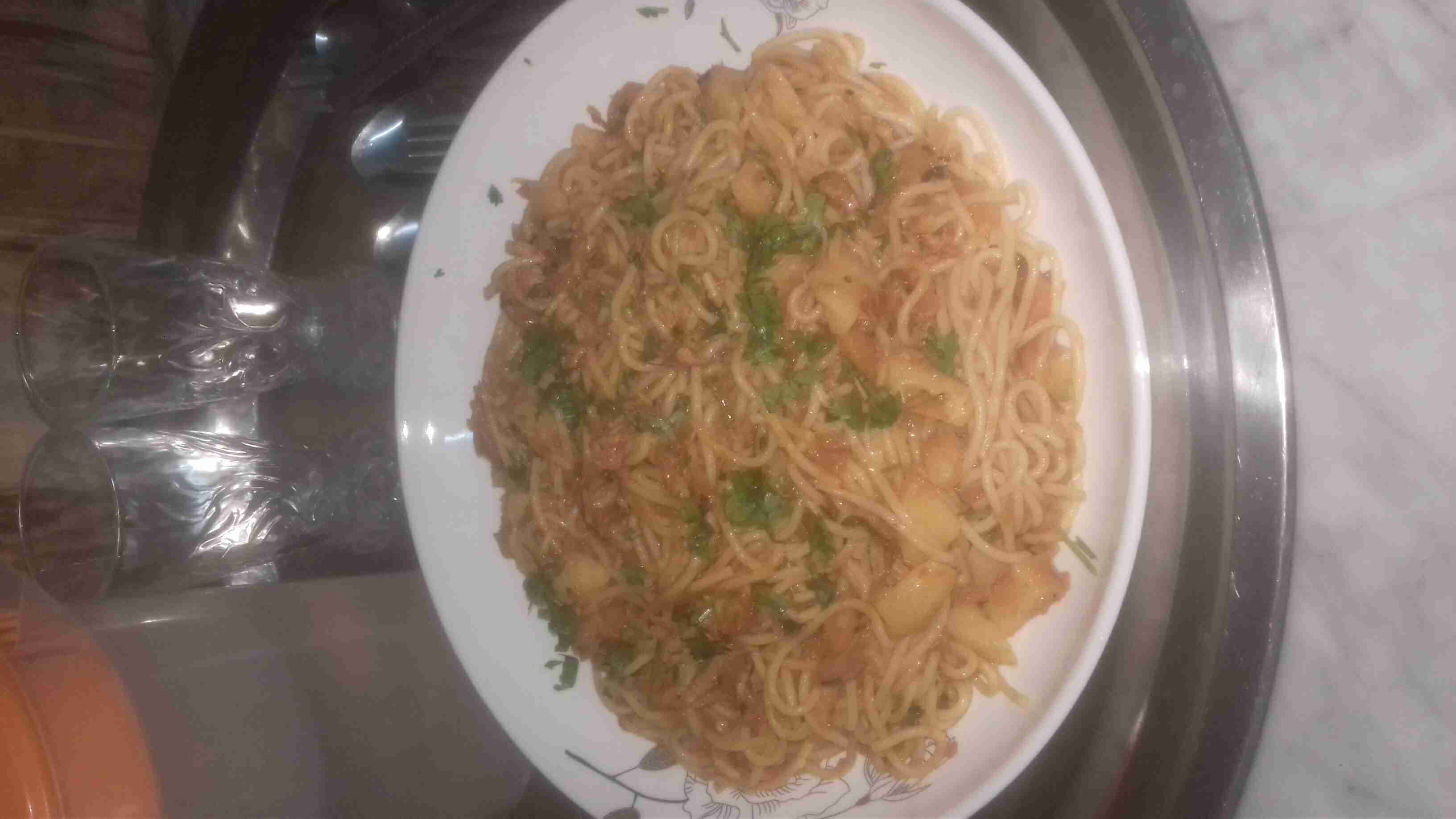 .نسلق المكرونه مع البطاط والجزر وشويه ملح نفرم البصل والطماطم والكزبره والقدونس نجيب قدر فيه شويه زيت ونحط البصل بس يذبل نحط الطماطم والفلفل الحار والملح والبهارت ع حسب الرغبه وحبه ماجي ونحرك ثلاث دقايق