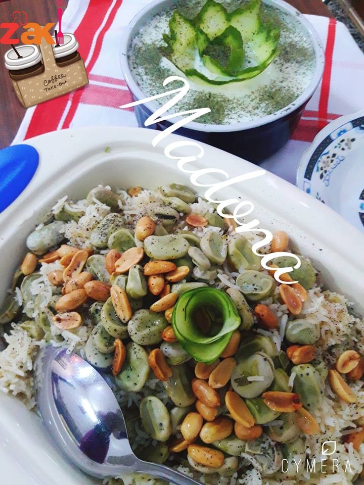 نضع ملعقتين زيت ..وملعقه سمنه ..بالطنجره ونضيف حبات الفول وتقلب ..ونضيف فوقها 2كوب من الماء ..مع ملعقه من بودره الماجي ..وبس تغلي المي نضيف الارز المصفى مع ملعقه ملح..ونغطي الطنجره حتي تنشف المي ..ونخفف النار ونتركه 10 د ..وبعدها يقدم ويزيين بالمكسرات ..