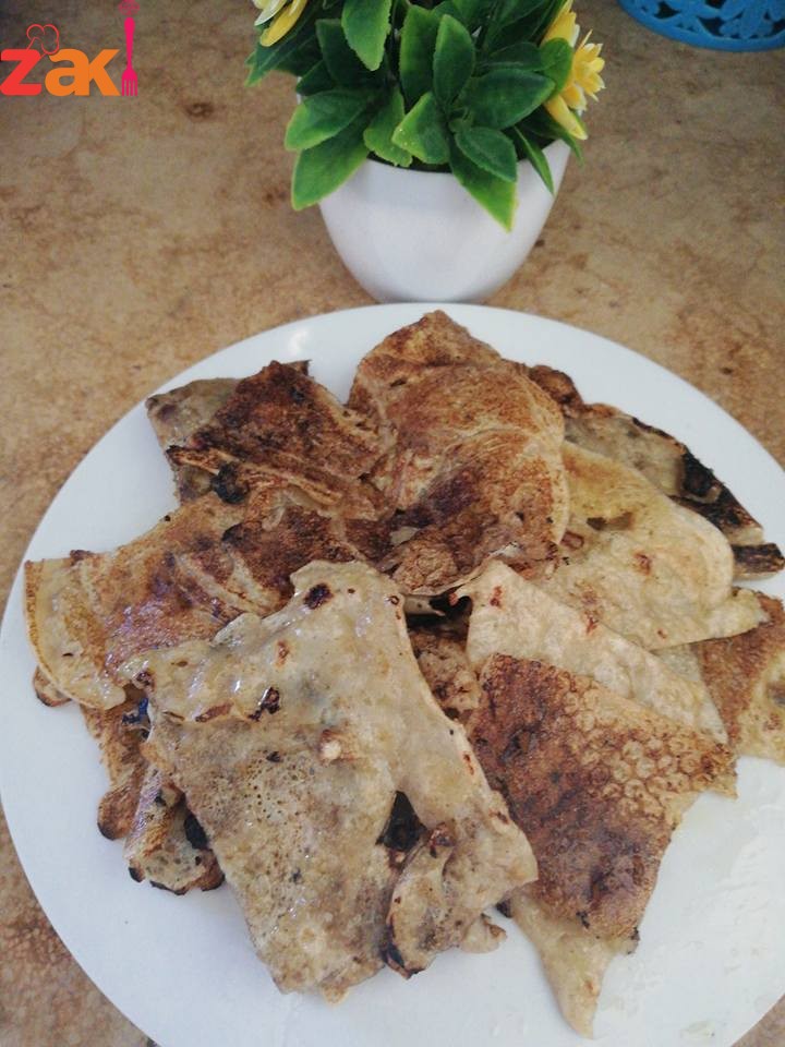 كيلو طحين ابيض. كأسه طحين اسمر وإذا ما في عادي طحين اسمر. رشه ملح. وع الخلاط بتخلطي المواد مع بعض بميه عاديه بتكون العجينه سايله متل عجينه خبز الشراك أو القطايف وبعدين صينيه تفيال. في صاج خاص له والشغله.. المهم بتحمي صينيه ع الغاز ولازم تكون عاليه وبعدين بصيبوا من ابريق الخلاط شويه بتمدوا ع السريع متل طريقه خبز الشراك بتكون رقيقه أو أقل من الوسط بتحمر من تحت وتنقلب ع الوجه التاني وتعملواطبقات وبعدين ما تخلصوا الكميه.. بزيت زيتون بتدهنوا ع الجهتين ومع رشه سكر أو إذا كان في سمن بلدي تدهنوا فيها مع رشه السكر ع الجهتين وبصفهم فوق بعض وبعدين بتقطعهم في السكينه مربعات وتقديم وهي بارده وصحه وعافيه