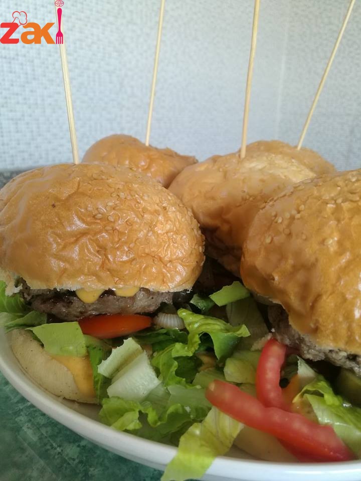 بجيب خبز البرجر بفتحه وبخضي لبه… بدهن من الصوص عالخبزتين وبحط المخلل