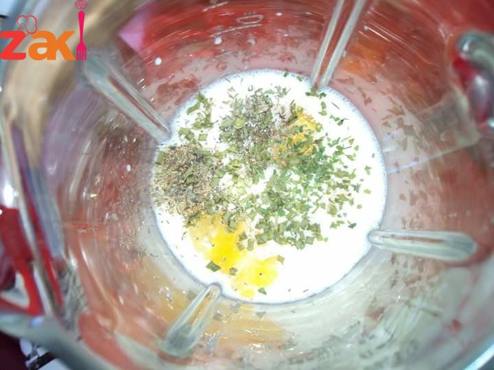 في خلاط كهربائي(ميكسور) نحط الحليب نضيف عليه البيض والزيت والطحين والملح وكنت نسيت لم اكتب في المقادير الكسبرة او قصبرة كل واحد كيف يسميها فلفل اسود السبع بهرات نخلط مدة 30ثانية على الاقل نتركها ترتاح بجهة مدة ربع ساعة او اكثر